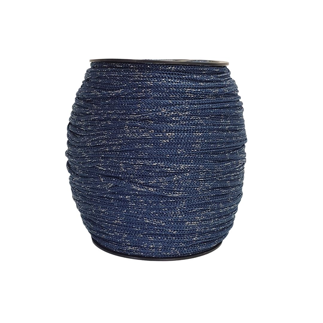 Fio Náutico. Cor: Azul Marinho com Lurex Prata - Espessura 4mm - Rendimento 250mts - Peso Aproximado rolo 680 gramas.